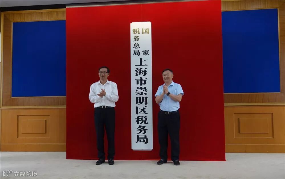 崇明区委副书记、区长李政和国家税务总局上海市税务局第六联络督导组常务副组长张志刚共同为“国家税务总局上海市崇明区税务局”揭牌。