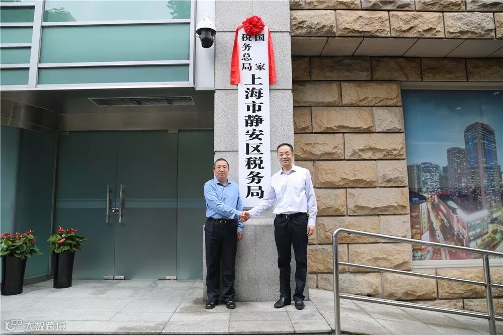 青浦区区长夏科家和国家税务总局上海市税务局第十二联络督导组常务副组长董理共同为“国家税务总局上海市青浦区税务局”揭牌。