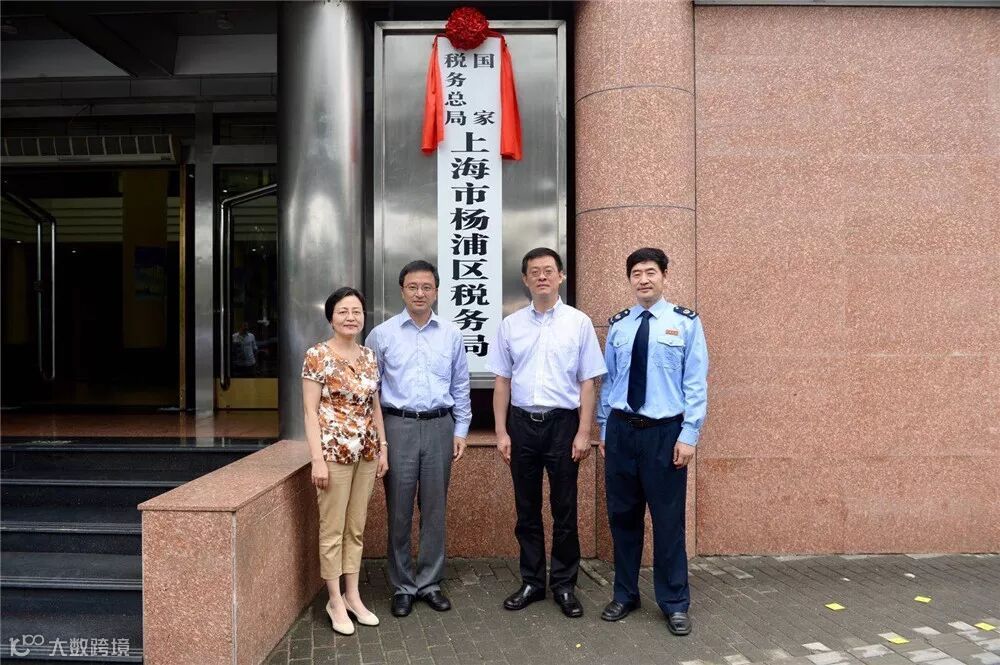 国家税务总局上海市税务局总审计师、第十一联络督导组组长李明和上海市杨浦区委常委、副区长丁欢欢共同为“国家税务总局上海市杨浦区税务局”揭牌。