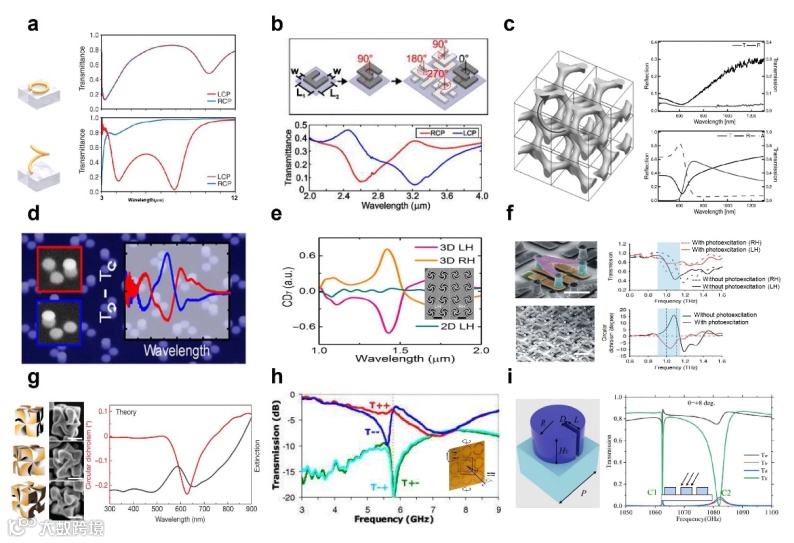 图1. 3D手性光学微纳结构:其在整个3D空间中均不具有镜像对称性。3D手性超表面能够提供较多的设计自由度,但其制备与加工更具挑战性。