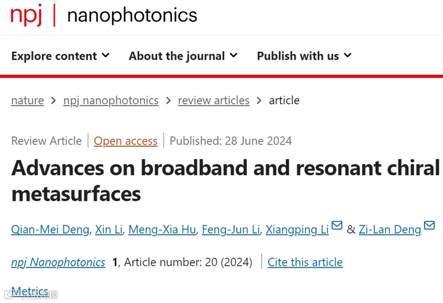 2024年6月 28日,暨南大学物理与光电工程学院邓子岚、李向平教授团队在学术期刊npj Nanophotonics上发表综述性论文“Advances on broadband and resonant chiral metasurfaces”。该综述论文系统性地总结了具有宽带及共振型光学手性超表面的总体进展。全面讨论了3D手性、2D手性、内禀手性、外禀手性等不同类型手性光学效应的基本原理与应用实例,并提出了手性光子学的目前面临的挑战及未来发展方向。