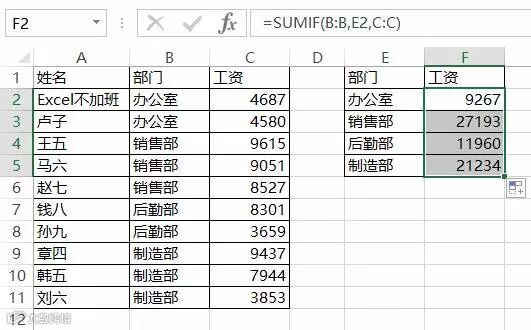 根据明细表,统计每个部门的工资。