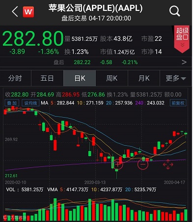 与此同时,高盛将苹果评级下调至卖出,目标价233美元。美国当地时间4月17日,苹果股价跌1.36%,收报282.80美元,最新市值为1.24万亿美元,较前一个交易日缩水170亿美元。