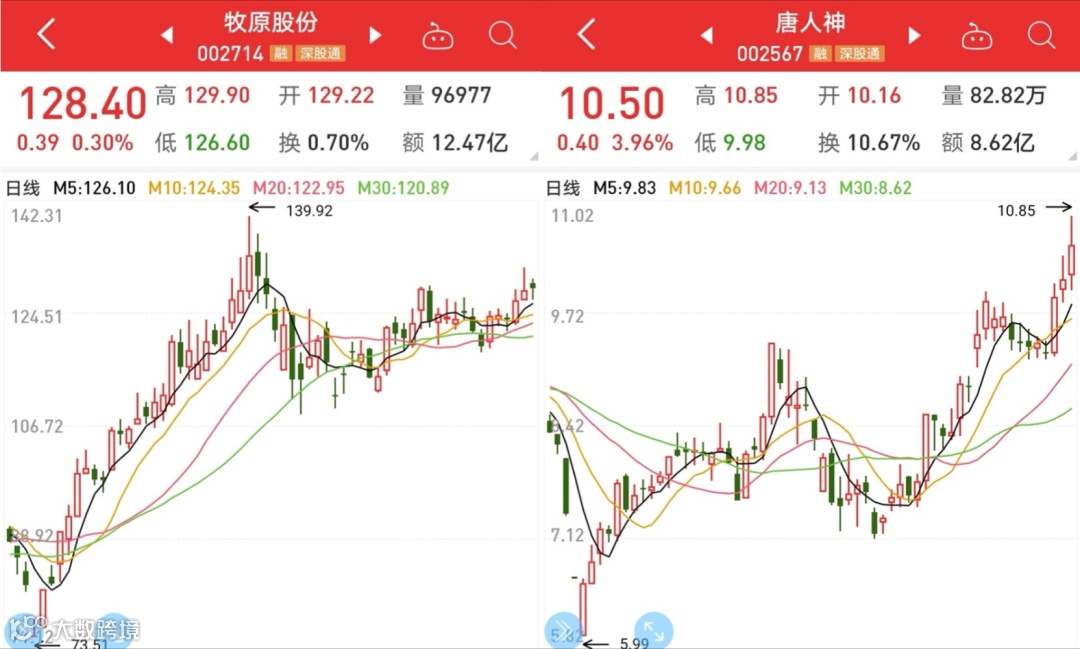 生猪供不应求,猪价上涨,养猪概念股的股价也持续冲高。