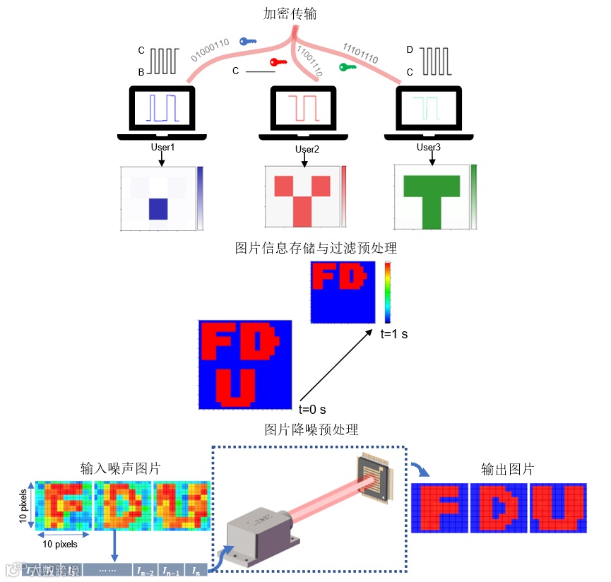 研究人员还进一步探索了该器件在加密通讯、并行数据通讯和图片预处理等领域的可能运用,如图2所示。