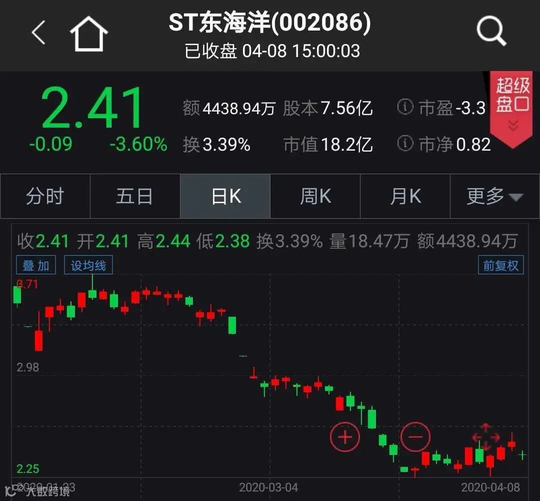 4月8日下午收盘后,ST东海洋4月8日公告称,截至公告日,公司最近三十六个月内累计受到深交所二次公开谴责,根据《深圳证券交易所股票上市规则》规定,“上市公司最近三十六个月内累计受到深交所三次公开谴责的,深交所有权决定终止其股票上市交易”,公司股票交易存在可能被终止上市的风险。