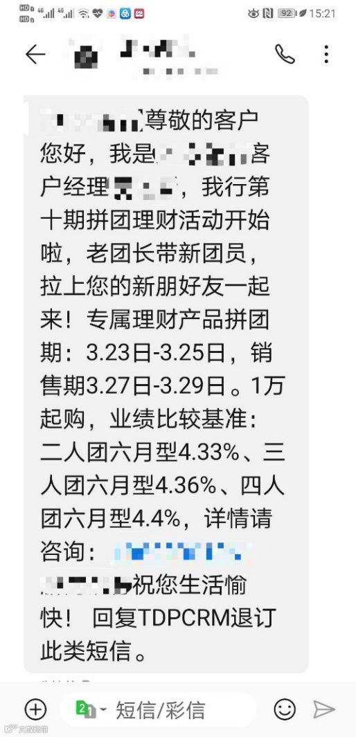 该行老客户王阿姨被这种银行理财“拼多多”模式带起了兴致。她表示:“目前银行理财产品的年化收益率在4%左右,‘拼团’之后收益一下子高了不少。”于是,在收到“拼团”理财的推销短信后,王阿姨立即让丈夫开了一张新卡,“二人团”随即拼成功。