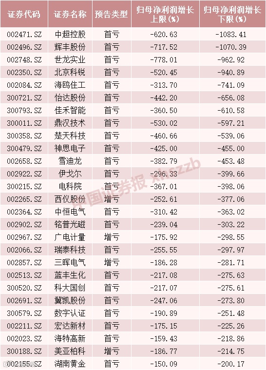 部分一季报预亏个股
