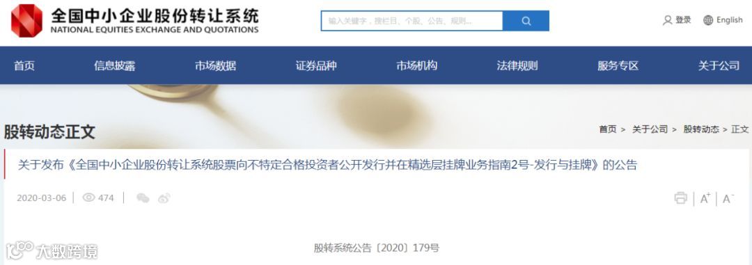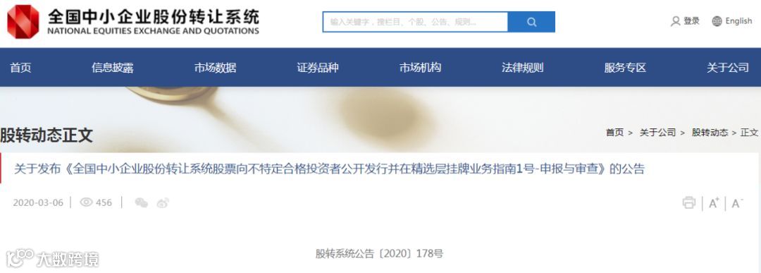 按照证监会关于全面深化新三板改革落地实施工作部署,配套《股票向不特定合格投资者公开发行并在精选层挂牌规则(试行)》(以下简称《公开发行规则》)落地实施,2020年3月6日,全国股转公司发布实施两件业务指南。