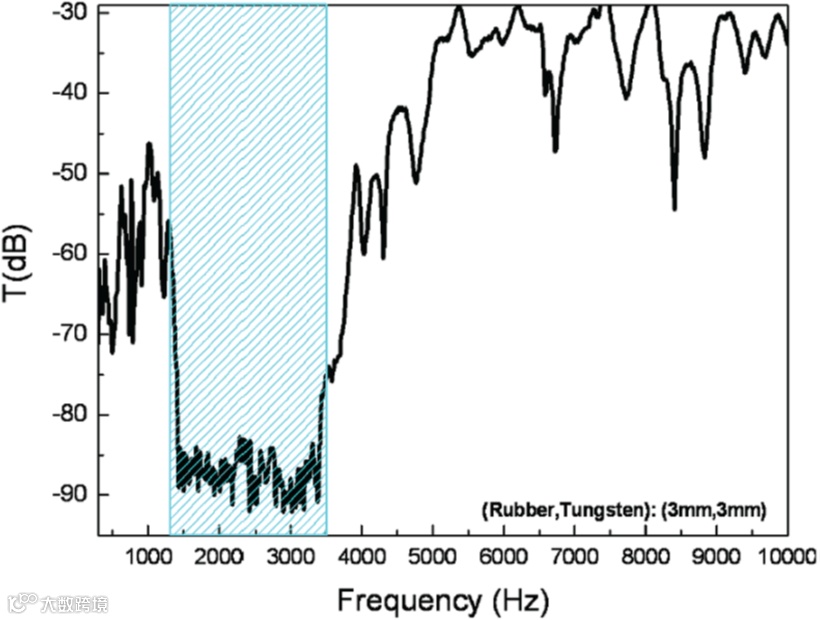 在带有谐振短截线的板上进行的传输测量显示了1300–3500 Hz范围内带隙行为的有力证据