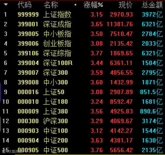 在上周五(2月28日)欧美股市弱势下滑的背景下,周一A股市场率先扛起反攻大旗。截至收盘,上证综指、深证成指、中小板指、创业板指、上证50、沪深300、中证500等七大股指涨幅均超3%。