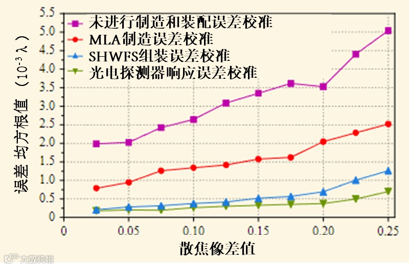 (3)MLA的制造误差:即使采用高精度制造技术,MLA仍然可能存在一些残余误差,使用均匀波前来测量MLA光学确切参数,从而消除MLA中的制造误差。