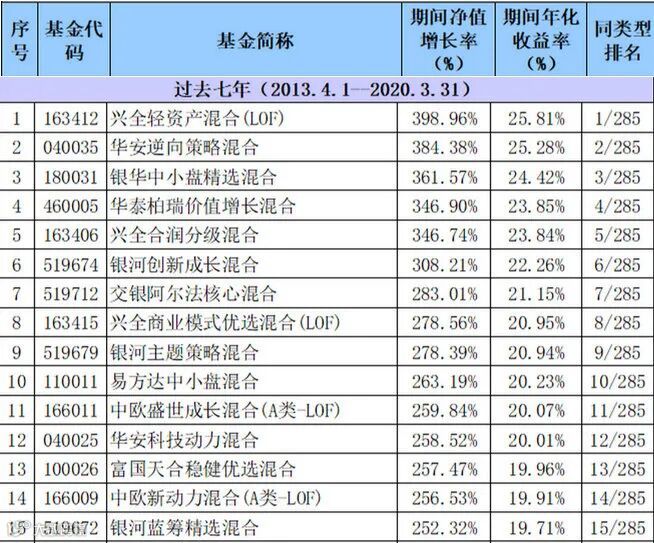 过去七年间收益率居前的偏股混合型基金