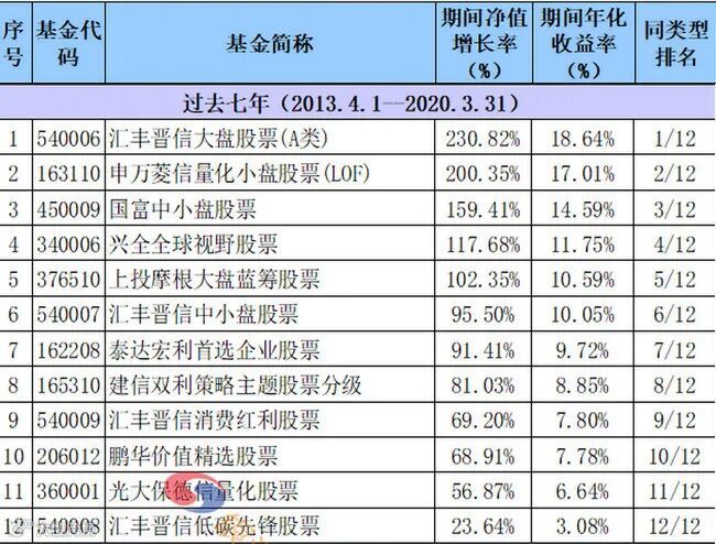 过去七年收益率居前的标准股票型基金