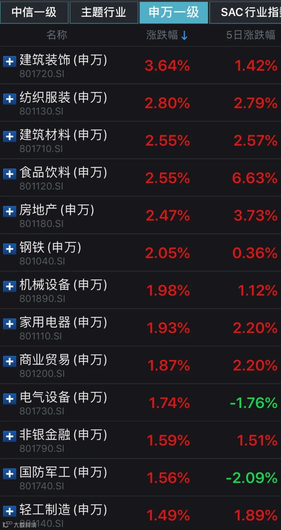 大基建板块领涨