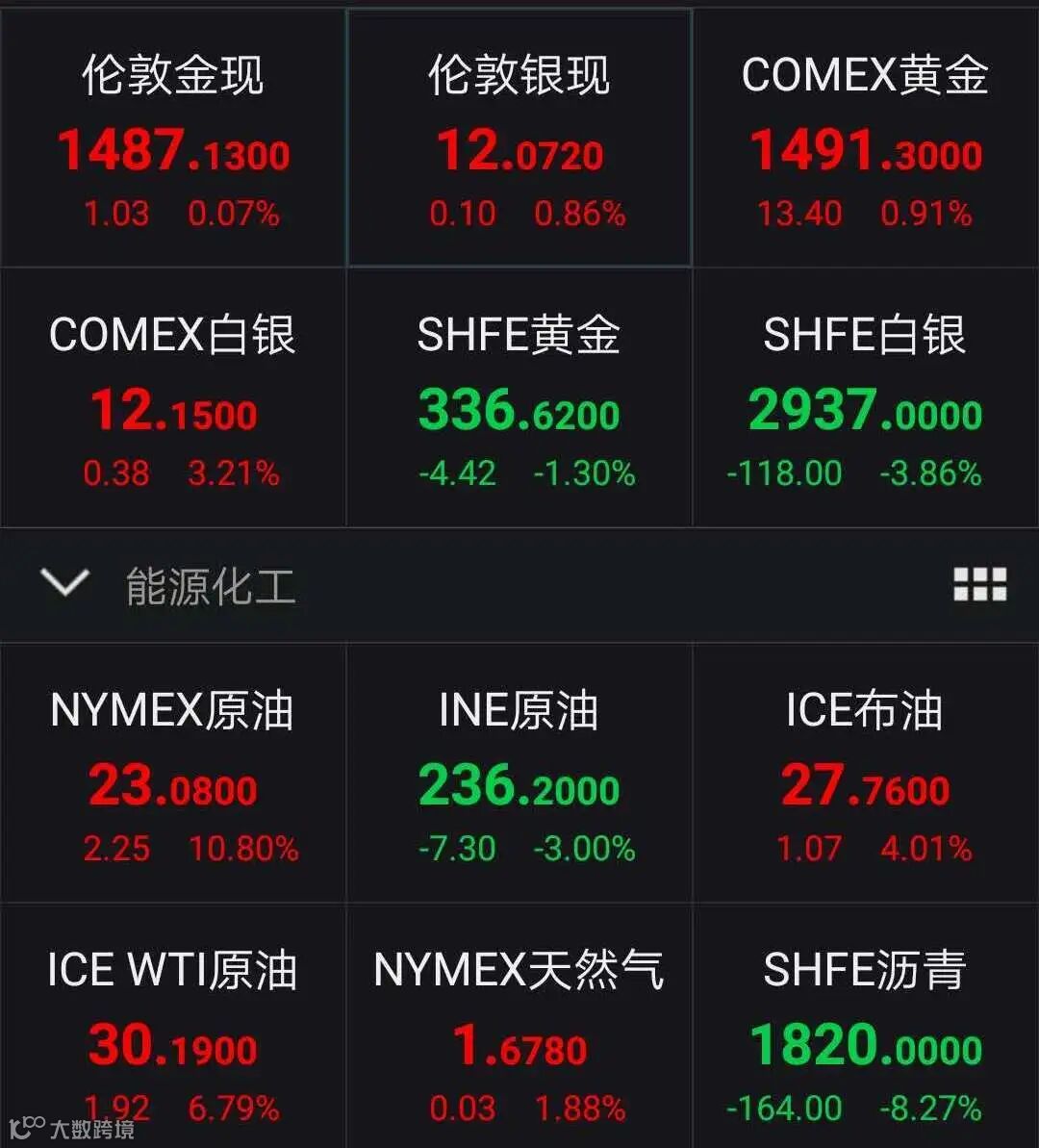 美、布两油持续反弹,布油重回26美元上方,日内跌幅收窄至1.34%,WTI原油升至23美元上方,现涨2.59%。
