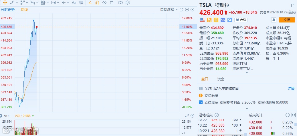 值得注意的是,特斯拉一度涨超20%。