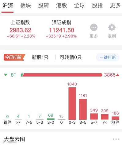 受再融资新规、中期借贷便利(MLF)“降息”等多项利好因素推动,A股市场17日再度大幅放量上涨,上证综指成功回补了春节后第一个交易日的向下跳空缺口(此前深证成指、中小板指和创业板指已率先回补)。截至收盘,两市仅有81只个股下跌,涨停个股高达186只。