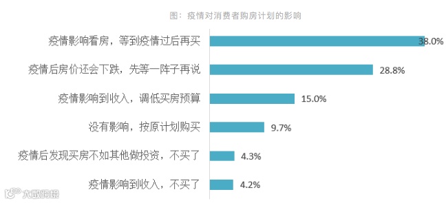 但消费者购房意愿受疫情影响不大,仅有8.5%的受访者表示受疫情影响将取消买房计划。多数消费者预期后期价格将小幅下跌或平稳,从而推迟购房计划。近7成购房者购房计划推迟时间在6个月以内。