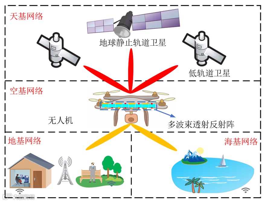 图1集成多波束透射-反射-超表面天线的空天地海一体化网络。