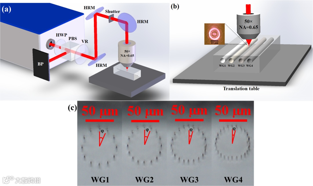 图1 飞秒径向偏振涡旋激光加工系统图与圆形包层波导端面显微图