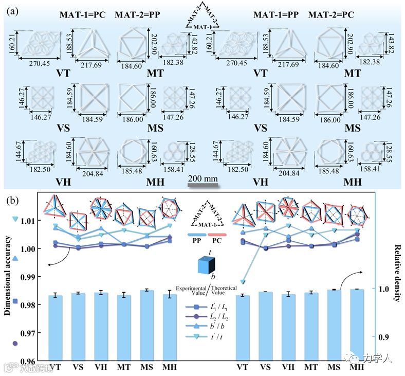 图2 多材料一体化增材制造的多组分超材料具有良好的尺寸精度和致密性