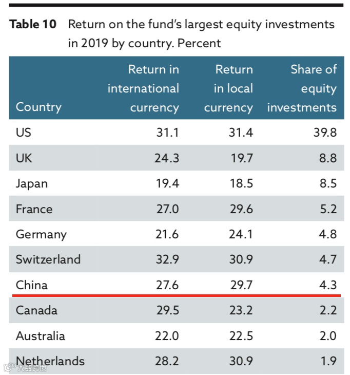 值得注意的是,这家公司中国公司股票(包括A股、也包括海外上市中国公司股票)投资从2018年底的3.6%提升至2019年底4.3%,在众多新兴市场中,对中国市场的仓位最高。