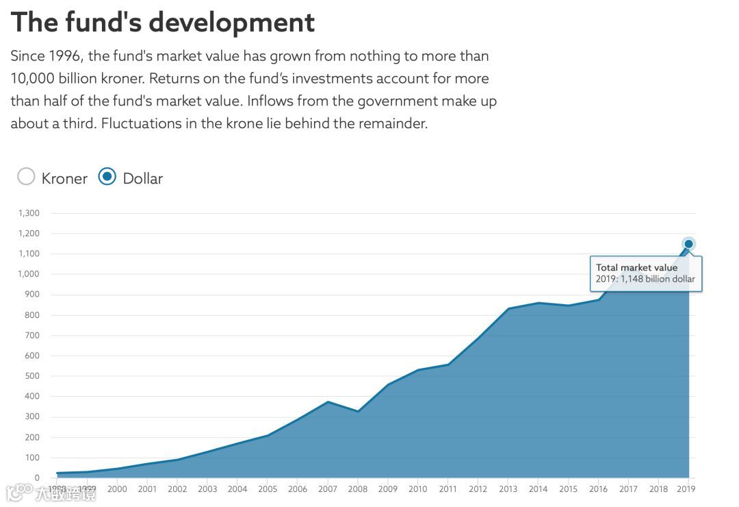 挪威政府全球养老金1998年至2019年规模增长情况