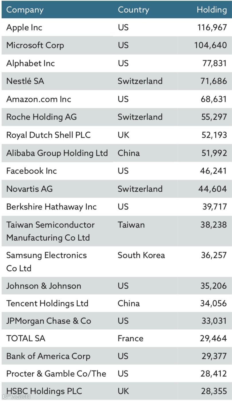 挪威政府全球养老基金前20大重仓股