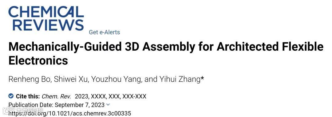 该文章以“ Mechanically-guided 3D assembly for architected flexible electronics ”为题发表在Chemical Reviews 上。清华大学柔性电子技术实验室、航院张一慧教授是该文章的通讯作者。清华大学航院博士后柏韧恒、2020级博士生徐世威和2023级博士生羊佑舟为文章的共同第一作者。