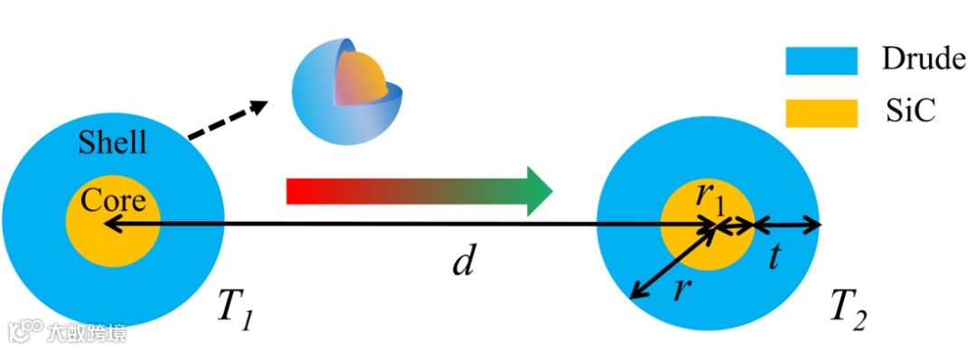 图1. 核壳纳米粒子之间近场辐射换热结构图。