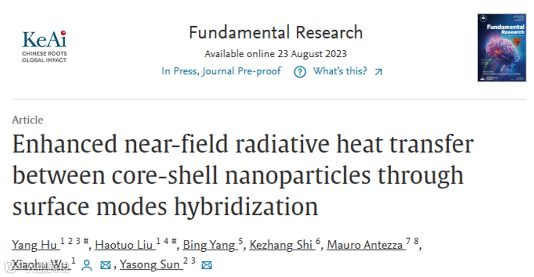 当物体之间的距离小于或等于热特征波长时,由于倏逝波的贡献,近场辐射换热会超过黑体极限多个数量级,近年来受到了大量研究。核壳纳米粒子由于其可以组合不同成分优异的物体特性,广泛应用于能源利用和能源转化等方面。对于核壳纳米粒子,会在壳-核以及壳-空气界面产生表面杂化模式,使得核壳纳米粒子的光学响应与均质纳米粒子产生显著区别。然而,核壳纳米粒子之间的辐射换热能否大于相同半径均质纳米粒子有待深入研究。