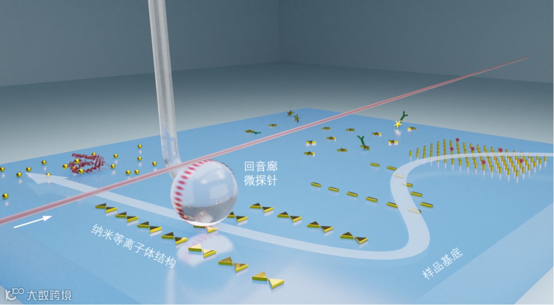 在传统由聚焦空间光束激发的纳米等离子体结构的基础上,回音廊微探针进一步实现了对拉曼信号两个数量级的增强(图2),总增强系数可超过10⁸倍。值得一提的是,该新平台与各类纳米等离子体结构具有广泛的兼容性和通用性,包括但不限于金纳米颗粒、纳米棒、纳米柱、蝴蝶结形纳米天线以及商用市售SERS试纸。