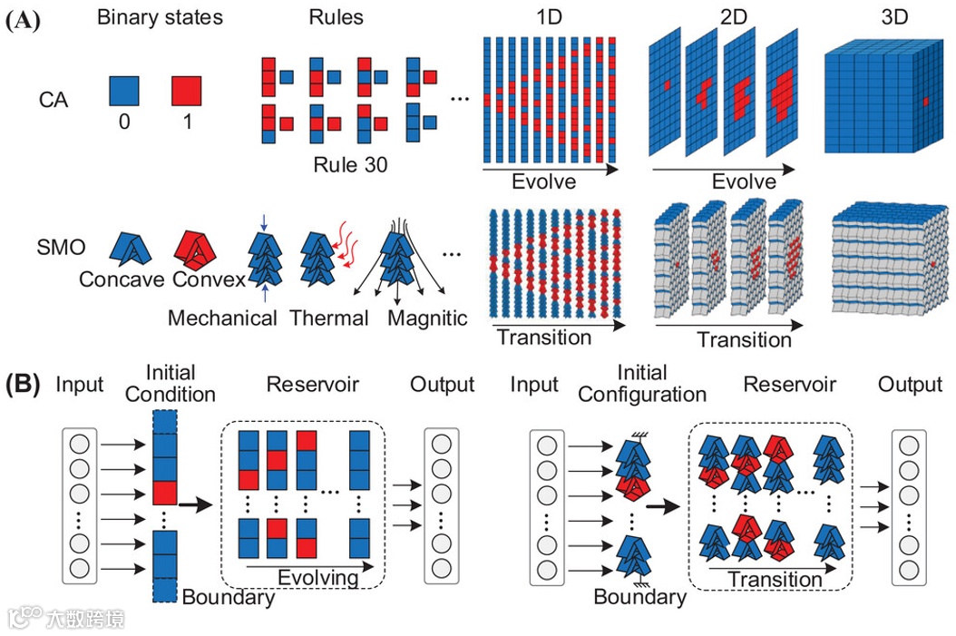 受元胞自动机的启发,复旦大学方虹斌教授团队提出了一种基于多稳态折纸超构材料的新型计算框架,该框架结合了储备池计算,无需构建逻辑门网络即可完成高级计算任务。因此,这种方法省去了传统机械逻辑中构建用于高级计算的大规模网络时对材料制造和信号传播的苛刻要求。利用多稳态堆叠三浦折纸超构材料作为验证平台,只需一个致动器就能在实验中实现数字识别。此外,新的计算框架还证明了手写识别和5位记忆任务等复杂任务的可行性。这项研究标志着在开发具有先进计算能力的新一代智能材料方面取得了重大进展。随着研究和开发的不断深入,这些材料将对从计算科学到材料机械智能技术等广泛领域产生变革性影响。相关研究发表在《Advanced Science》上。(徐锐)