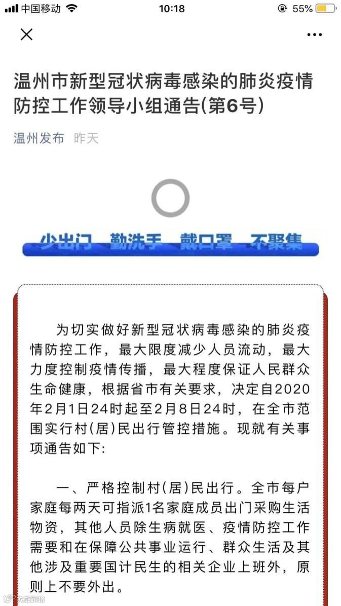 而温州则将重点放在了控制人口流动上。2月2日,温州政府发布公告,实行居民出行管控:每家每两天可派1人出门采购。