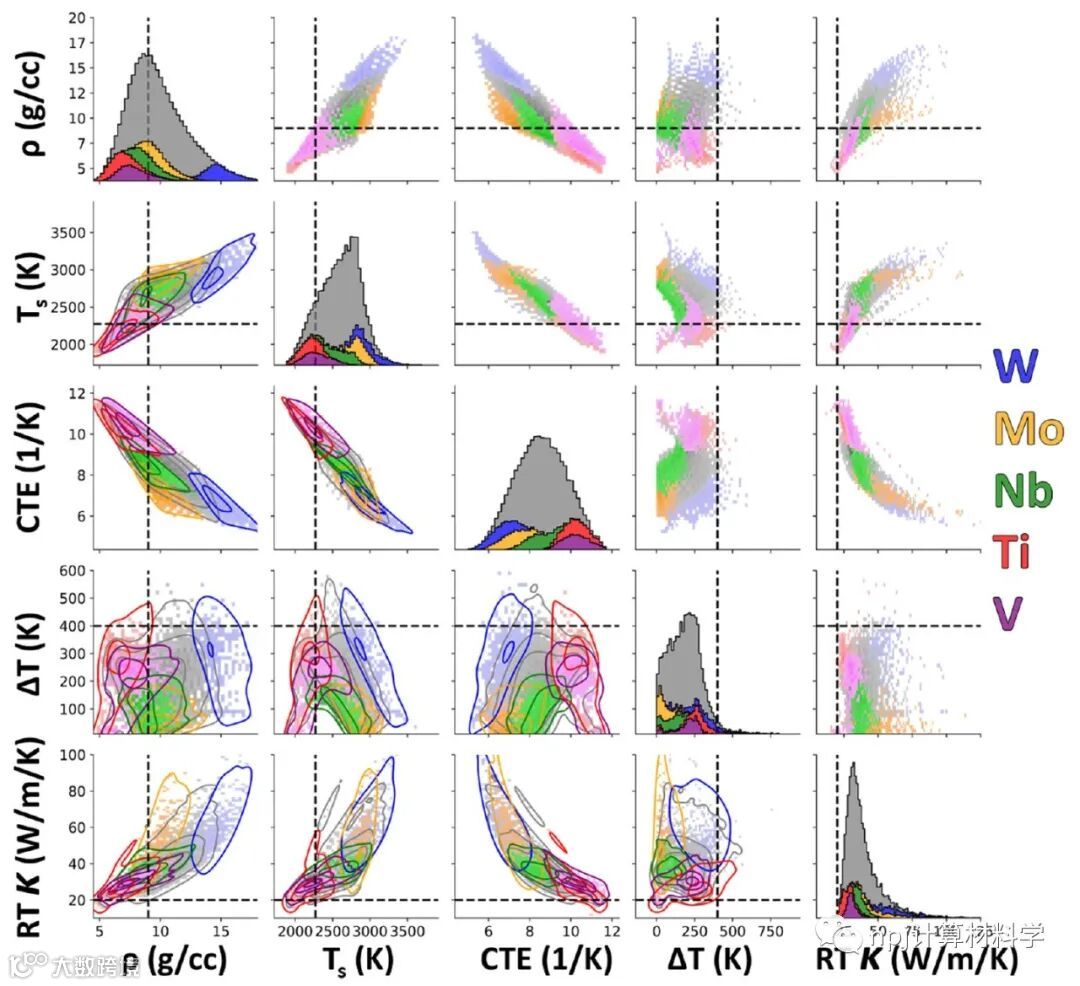 燃气涡轮机叶片的合金设计是一项复杂的任务,必须同时满足多个设计目标和约束条件,包括室温下的延展性、高温下的屈服强度、低密度、高导热系数、窄凝固范围、高固相线温度、较小的线性热膨胀系数等。特别是针对多主元素合金,由于其巨大的设计空间,不可能通过传统的实验和计算来研究。