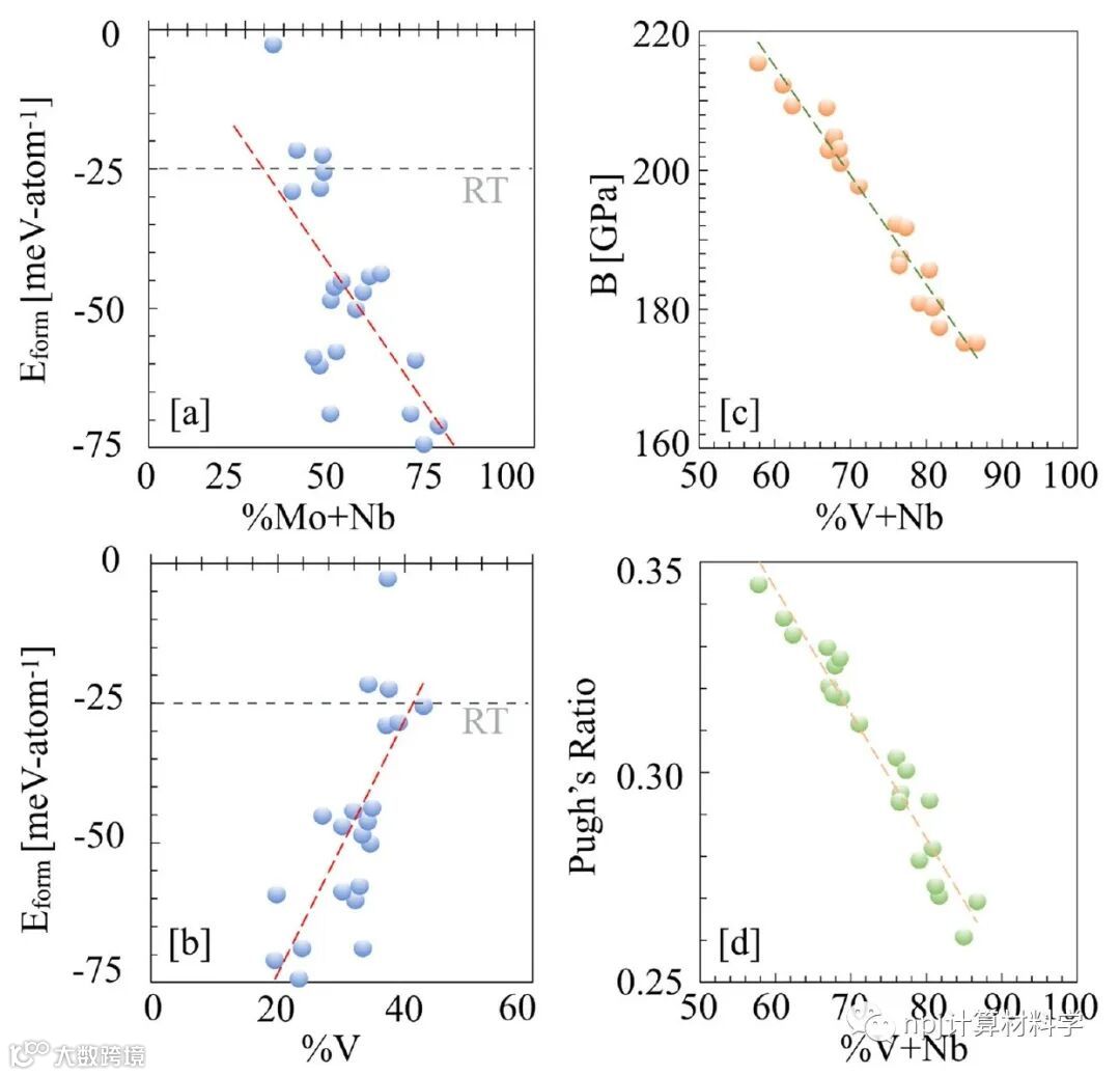 该方法在多主元素合金Mo-Nb-Ti-V-W的三目标、多约束设计问题的应用中得到了验证。这种方法考虑了概率预测的不确定性,减少了对预测边界位置的依赖。当应用在Mo-Nb-Ti-V-W高熵合金系统时,作者成功识别出了21种满足约束的帕累托最优合金。