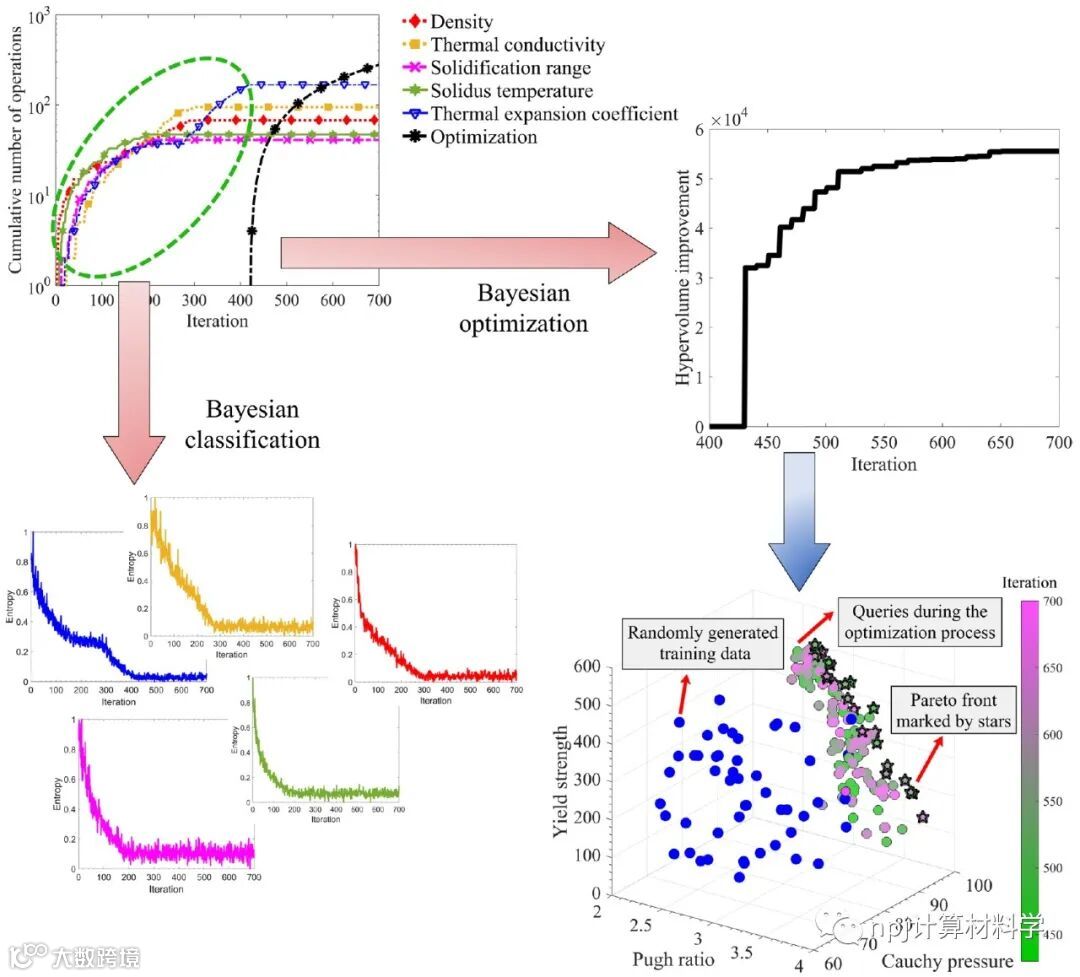 在确定这些帕累托最优合金时,传统蛮力计算法需要查询约1000个合金的5个约束条件来学习可行空间,本文提出的框架只需约700个查询,大大提高了识别效率。该文近期发布于npj Computational Materials 9: 49 (2023)。