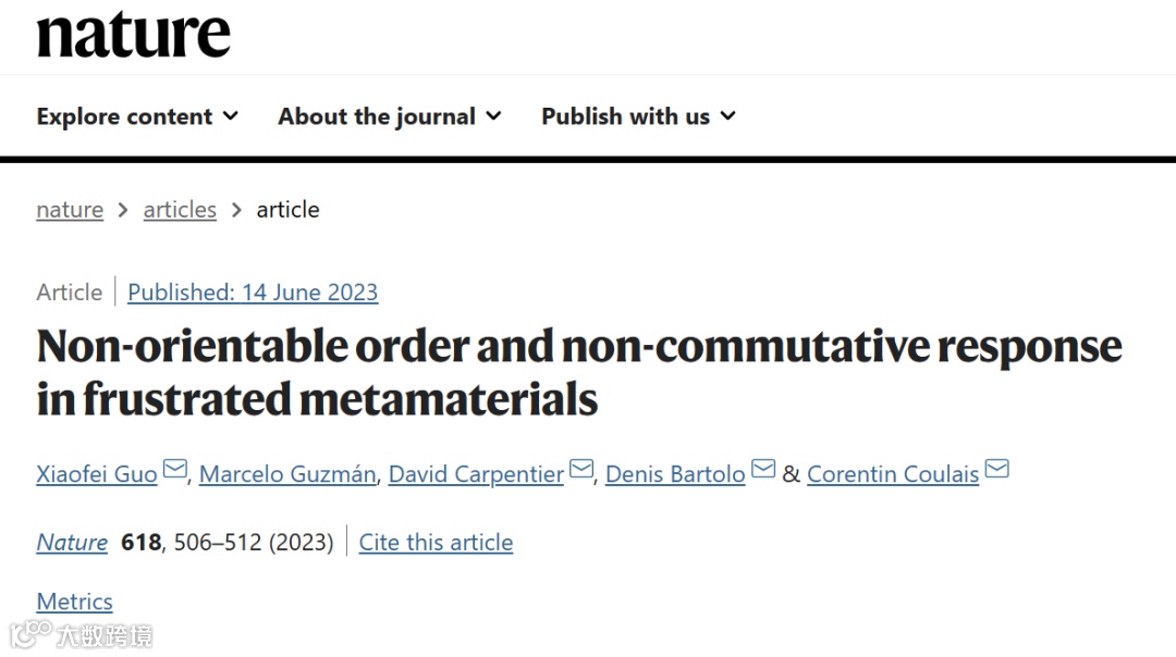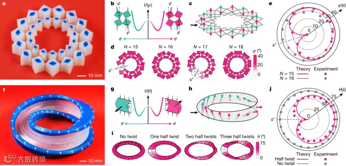 图 2:受挫超材料和柔性莫比乌斯带中的不可定向顺序