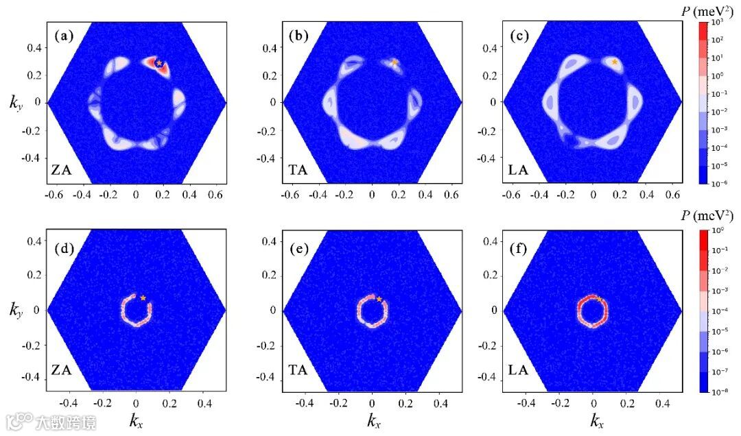 布里渊区内价带上不同位置的散射概率P。橙色的星号代表初态电子的位置。