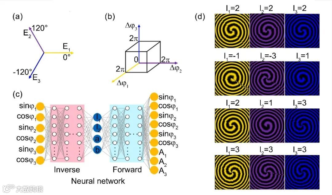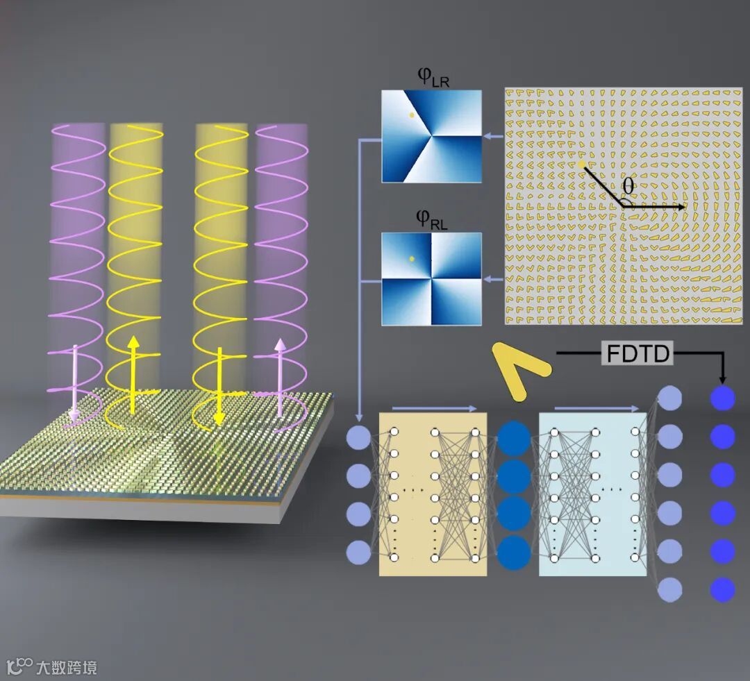 多功能涡旋光超强的信号传输能力已被广泛报道。北京大学方哲宇课题组提出了一种基于深度学习的超构表面设计平台,实现了多功能涡旋光的智能生成,复旦大学周磊课题组提供了实验支持。基于金属纳米结构形成的超构表面,在可见光和近红外波段展示了偏振复用的涡旋光的设计能力,并于1064 nm波长进行了实验验证。该研究充分开发了涡旋光在大规模密集数据通信和高量子数量子光学领域的潜力。