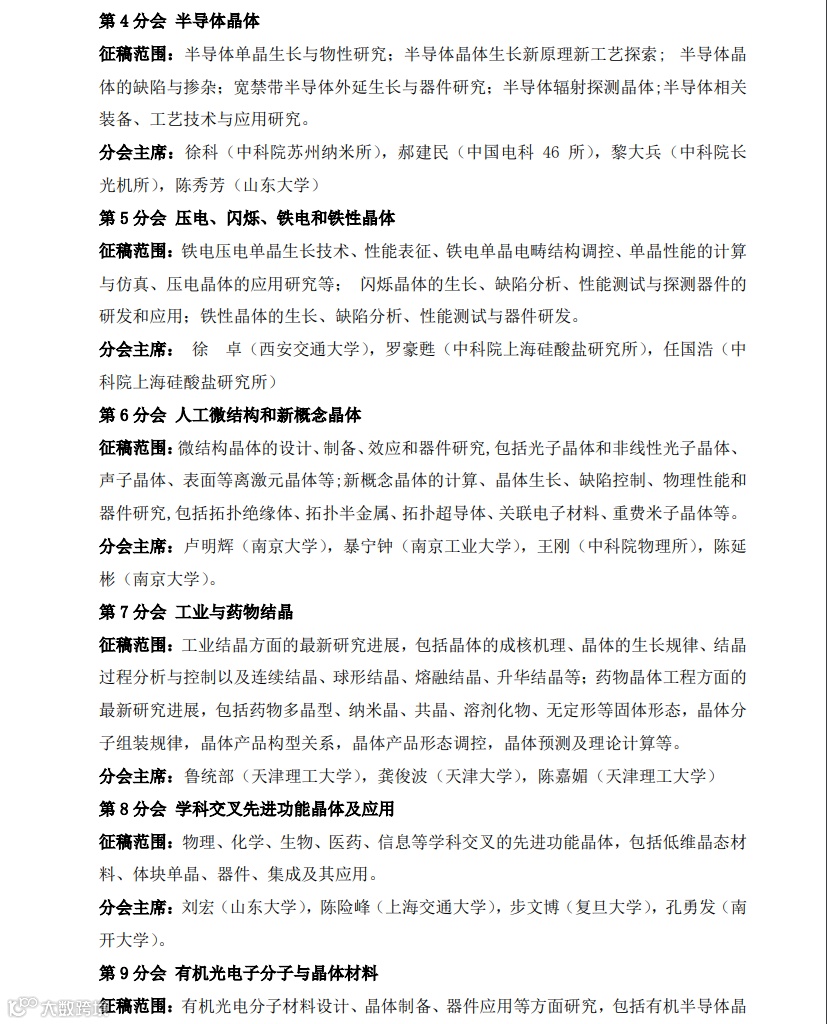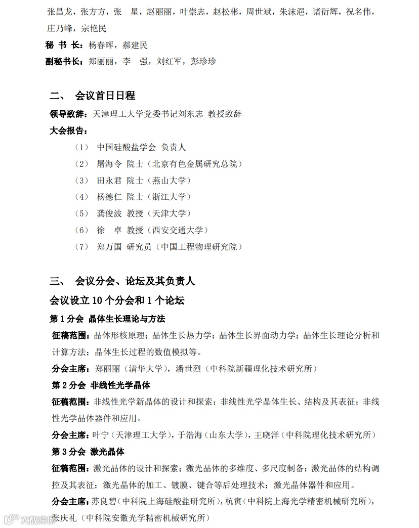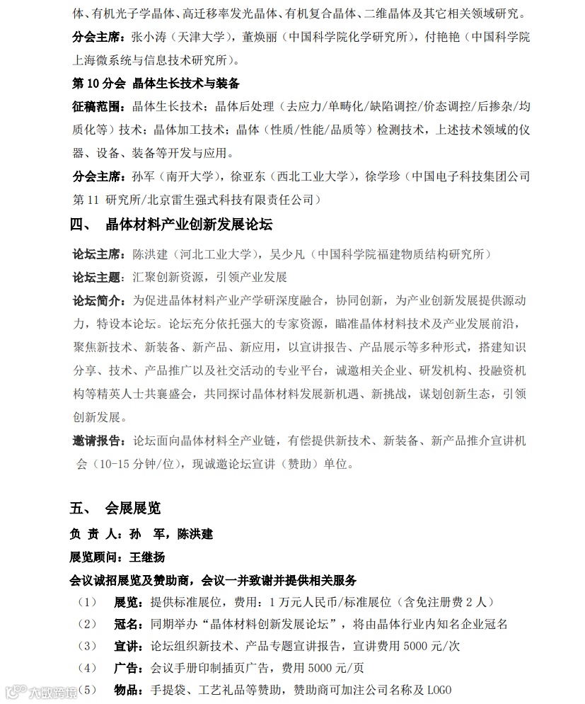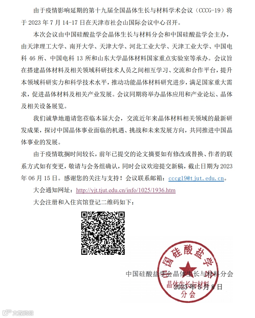 第十九届全国晶体生长与材料学术会议第二轮通知