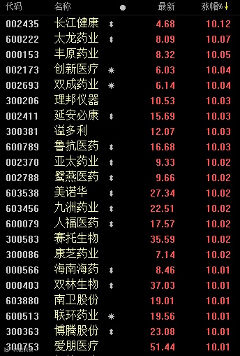 医药股强势领涨