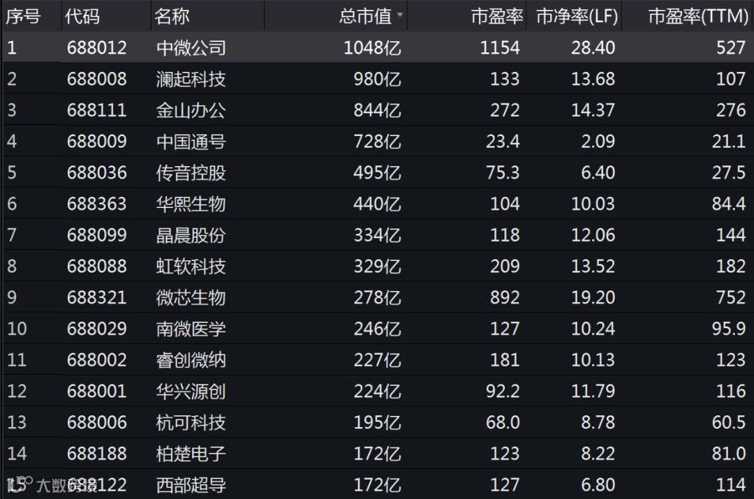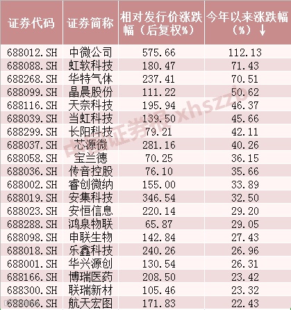 部分科创板个股涨幅