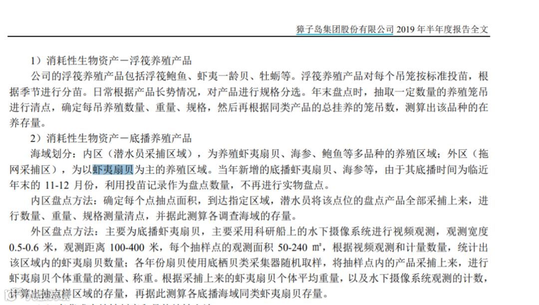 中证君发现,獐子岛在此前的定期报告的会计报表附注中也曾提到浮筏养殖和底播增殖产品的盘点方式。