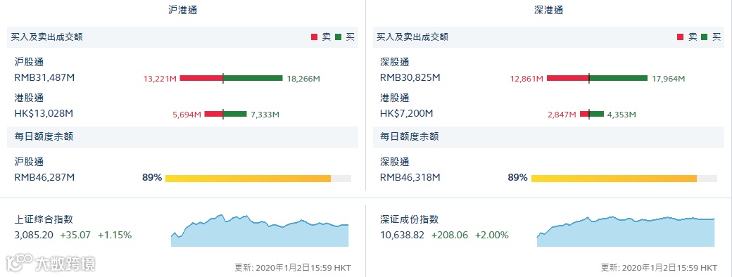截至2019年12月31日,沪港通、深港通合计持有A股市值已经达到1.43万亿元,较三季度末的1.16万亿元增加2690亿元。