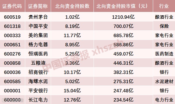 北向资金持股市值排行