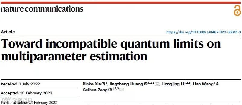 论文信息:Binke Xia, Jingzheng Huang, Hongjing Li, Han Wang, and Guihua Zeng, Toward incompatible quantum limits on multiparameter estimation, Nature Communications 14,1021(2023).