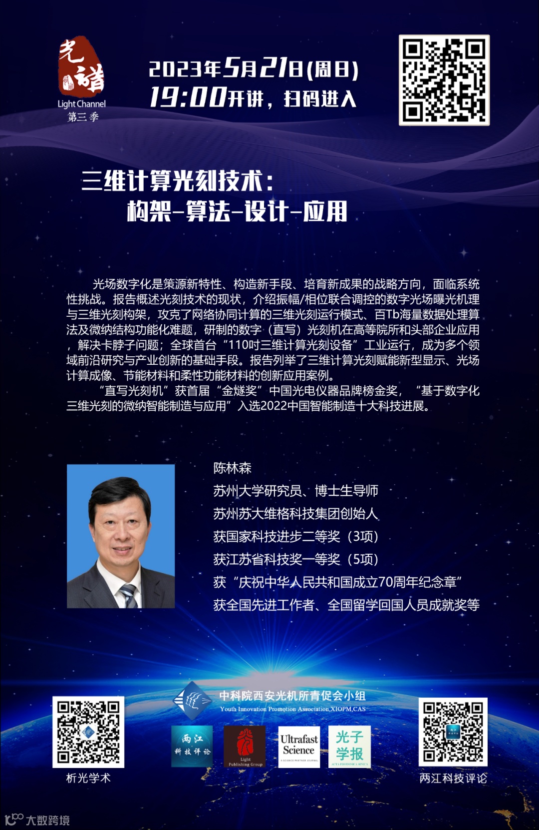 导读:光讲—有用光学报告在线开讲活动主办方中国科学院西安光学精密机械研究所承办方*中科院西安光机所青促会小组&析光