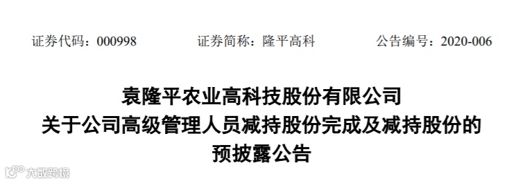 1月3日晚,隆平高科发布公告,公司董事、决策委员会委员、总裁、执行委员会主任廖翠猛在刚完成400万股的减持后,拟自公告披露之日起15个交易日后的六个月时间内通过证券交易所集中竞价交易、大宗交易方式减持公司股份合计不超过69万股,占公司总股本0.05%。